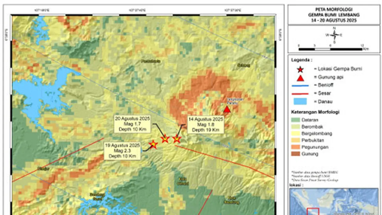 Badan Geologi Kementerian Energi Sumber Daya Mineral (ESDM) menerbitkan analisis rentetan gempa bumi yang terjadi akibat sesar aktif pada zona Sesar Lembang.