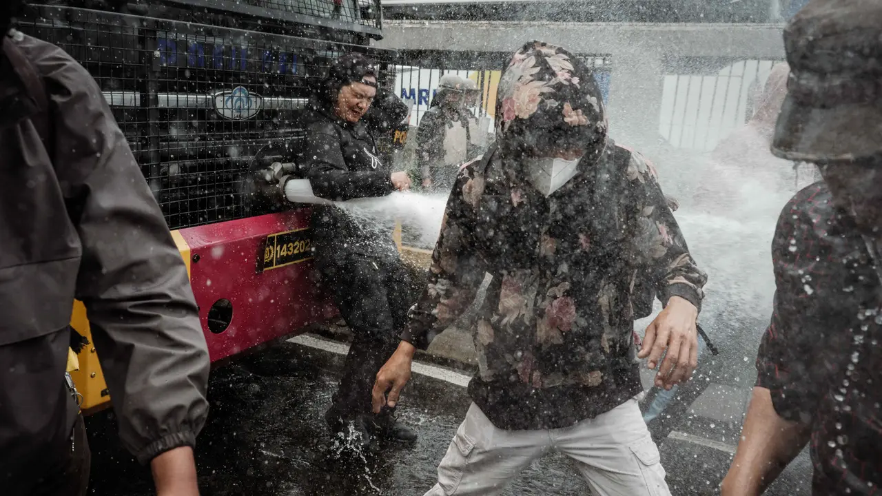 Kepolisian yang berjaga langsung maju dari arah Kemenpora, menembakkan gas air mata berkali-kali. Massa yang kebanyakan pelajar panik, berhamburan ke arah Jalan Asia Afrika.